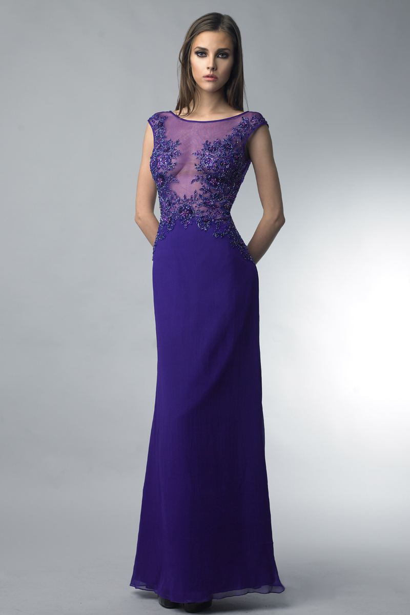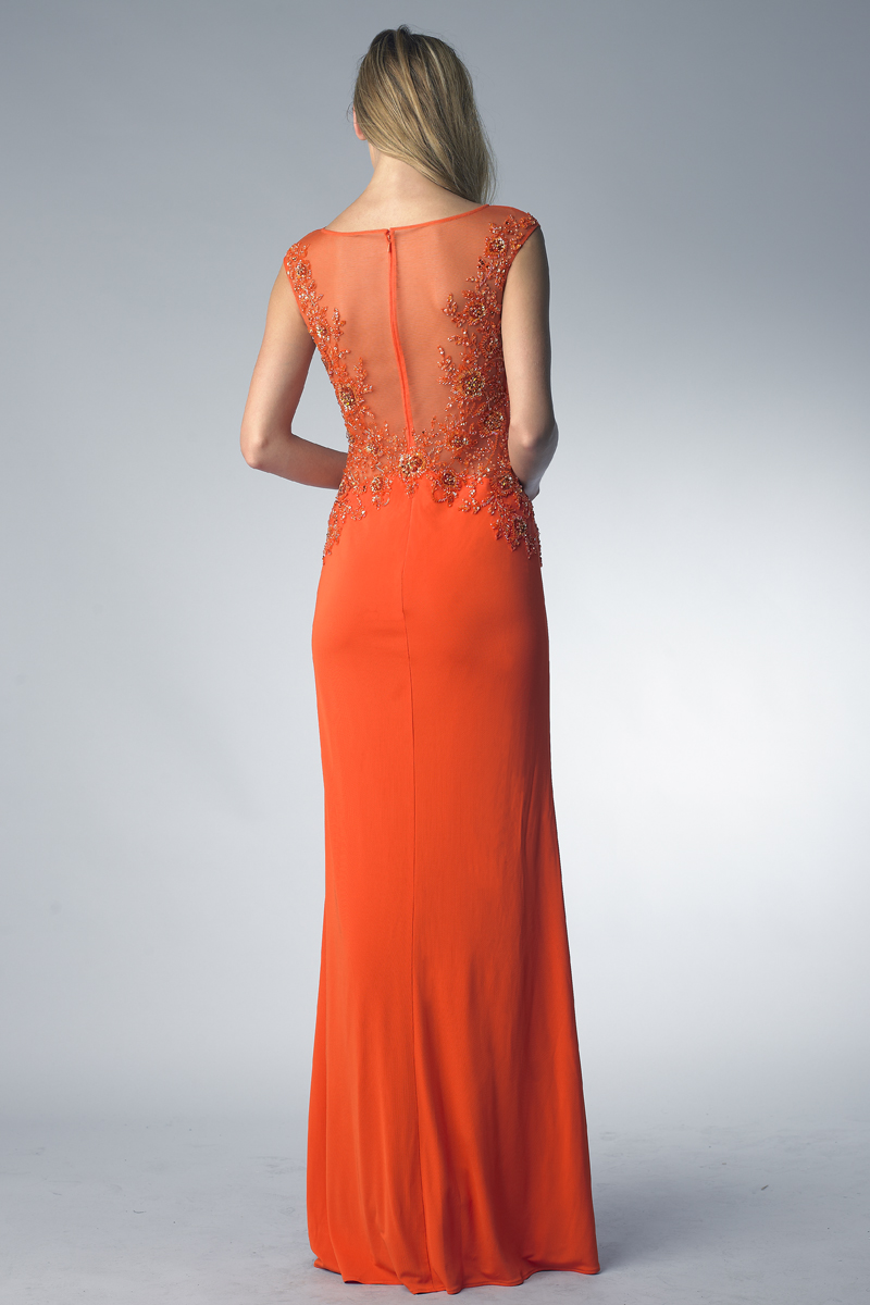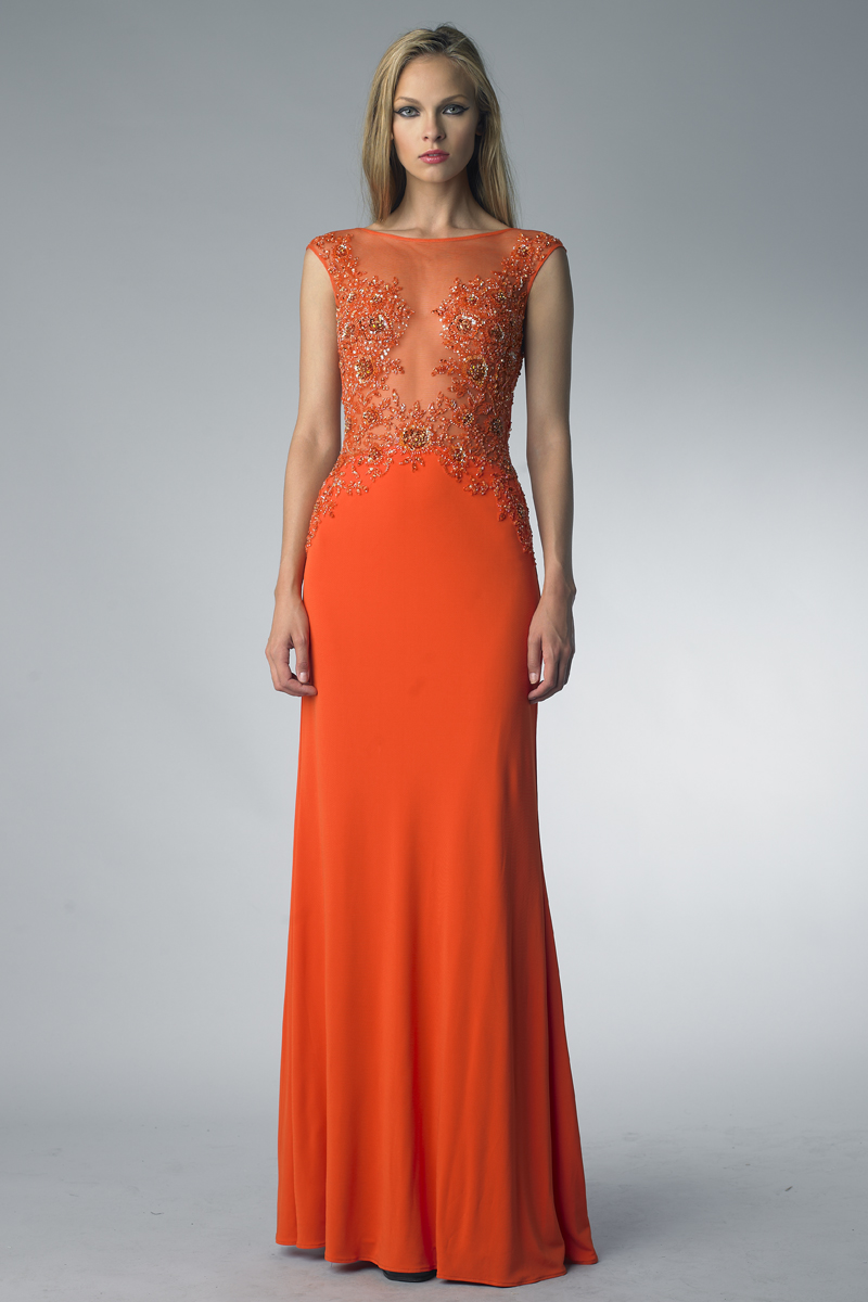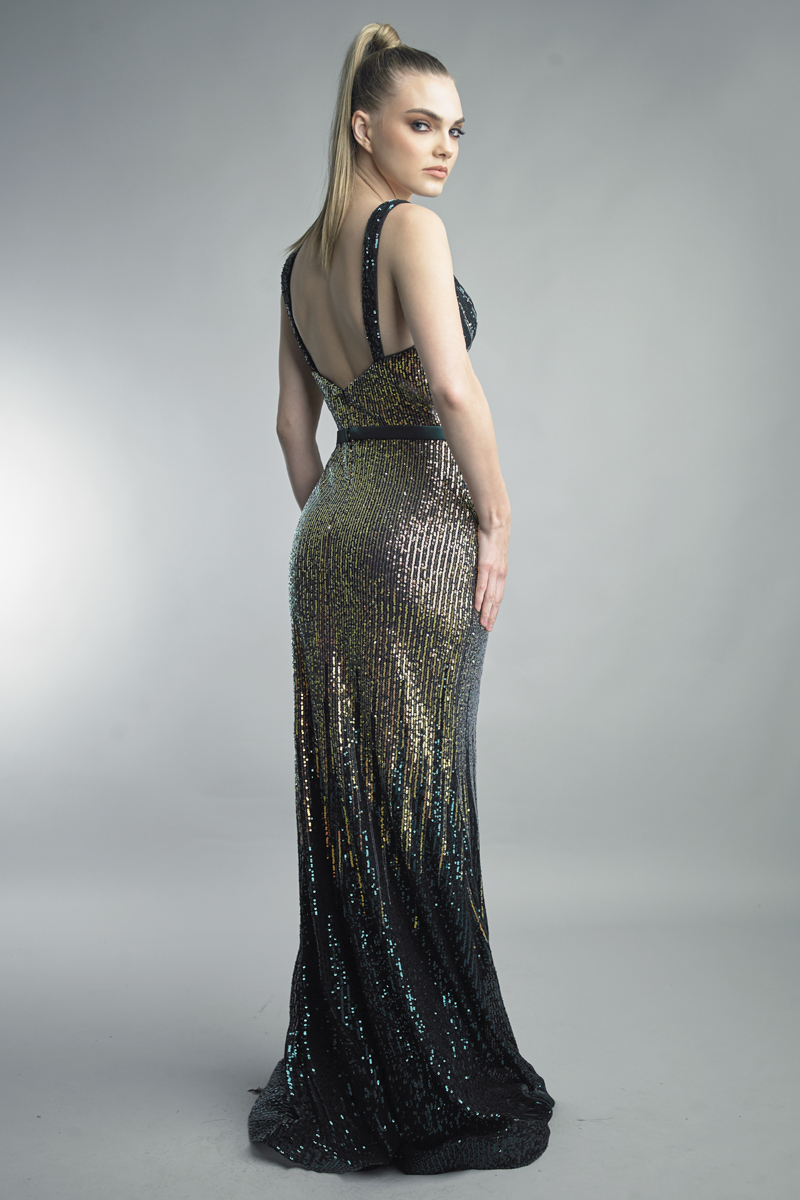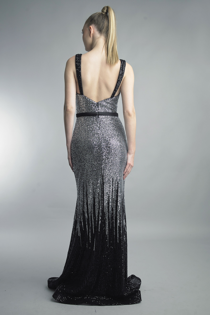 sleeveless evening gown with sequins