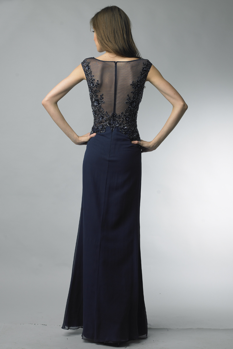 Beaded Ladder Front Back Sleeveless Column Gown by basix black label