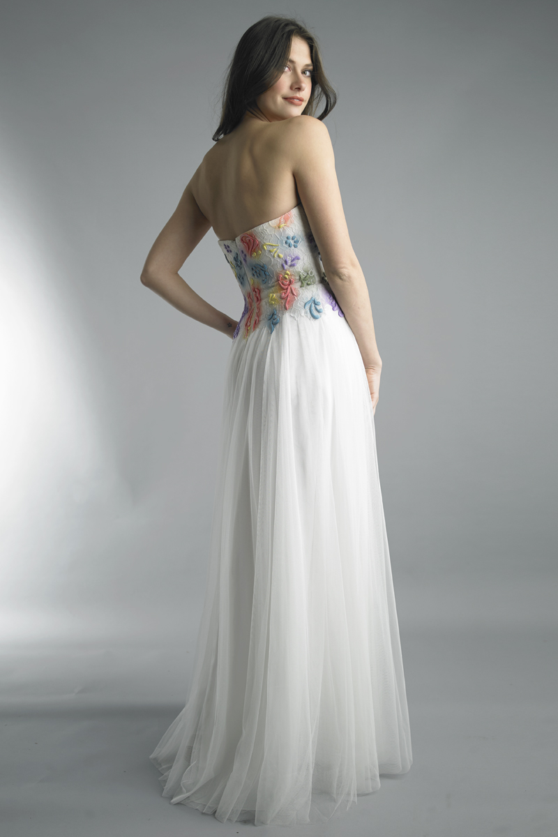 strapless multi color gown