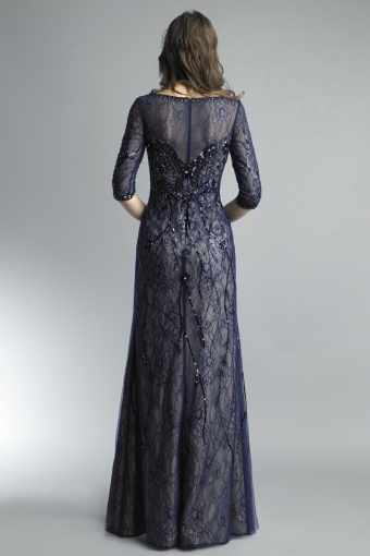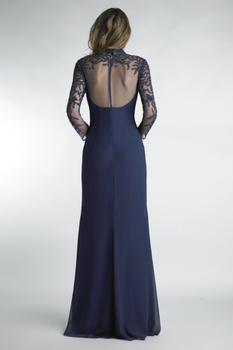 Basix Beaded Mock Neck Long Sleeve Sheer Yoke Gown in lightweight fabric