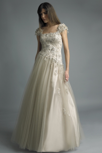 short sleeve ballgown with tulle enhanced skirt
