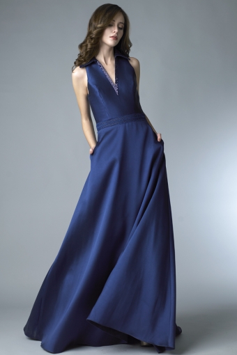 evenign dress with collar and beaded elements