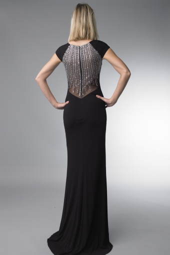 SHORT SLEEVE SEQUINED EVENING GOWN