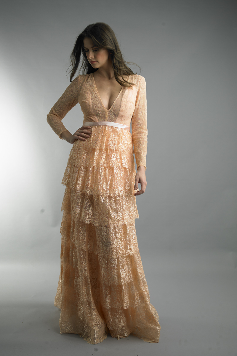 long sleeve tiered gown